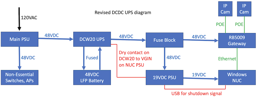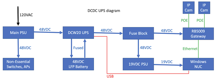 Cool. The design is supposed to provide power to a BlueIris system for hours, possibly days. Key is avoiding AC-DC conversions to improve energy efficiency and hence maximize runtime. So what has to run and how do we run it?
