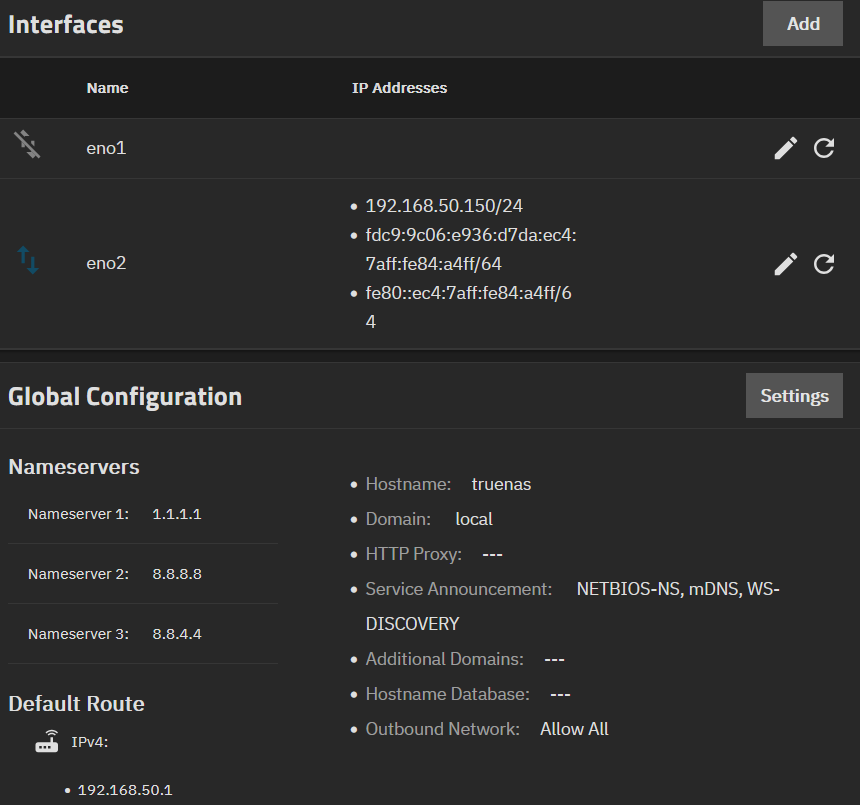 Have I made some silly mistake in my TrueNAS network configuration? Here’s what mine looks like: