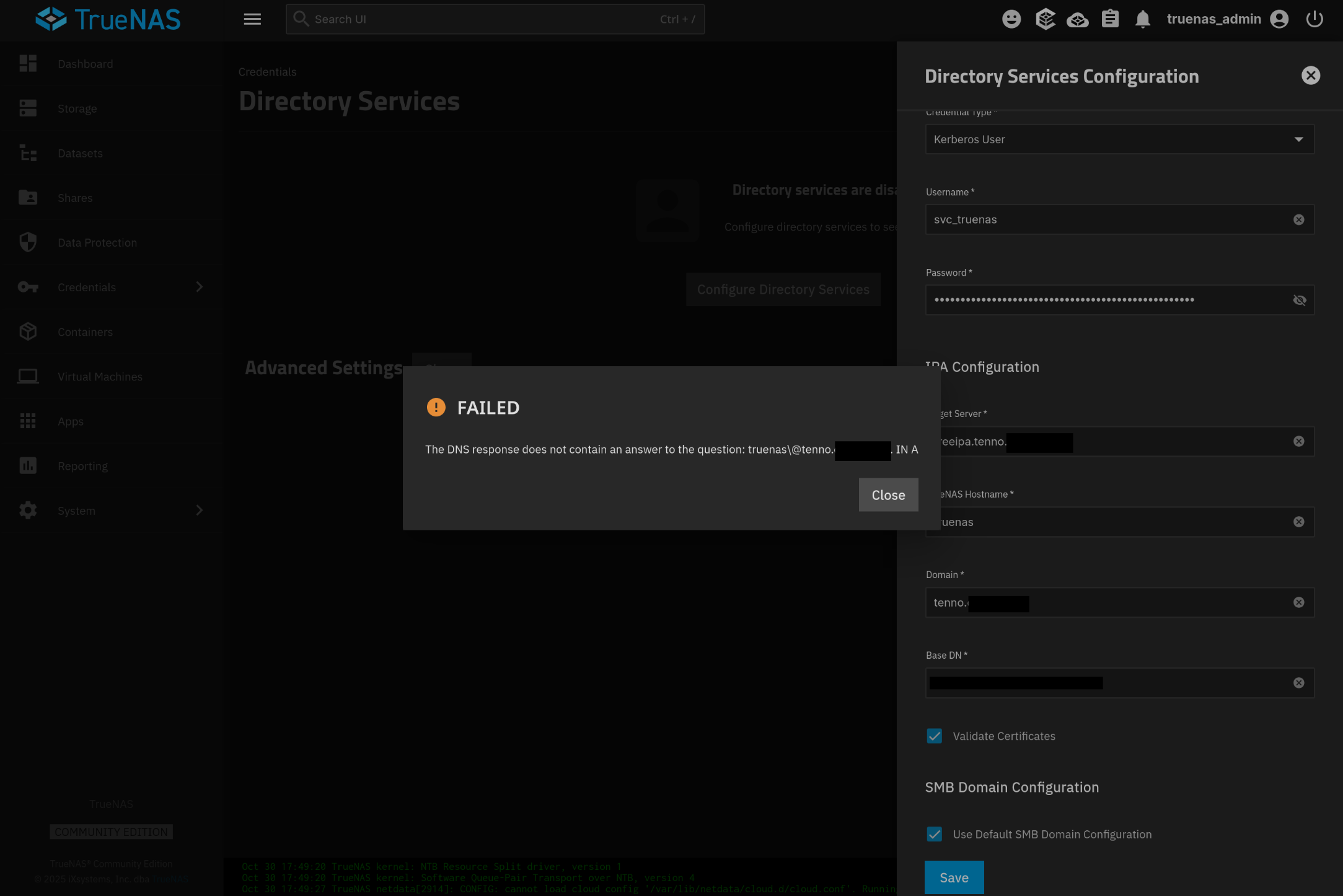 Just updated to 25.10 and noticed that my AD configuration was removed. Trying to re-add, and I keep getting the following error: