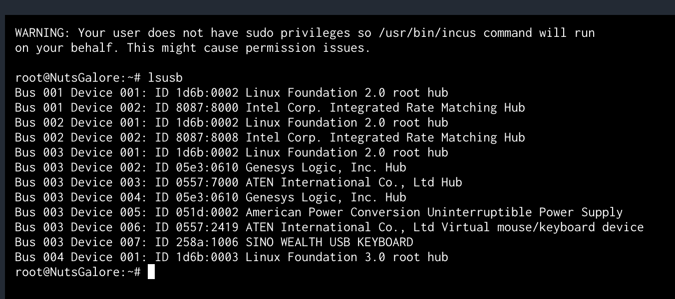 If I am understanding things correctly, the LXC should only “see” devices that have been explicitly “connected” to it via the TrueNAS Container WebGUI pane. For whatever reason, my NUT shell can see all attached USB devices. Is that intentional?