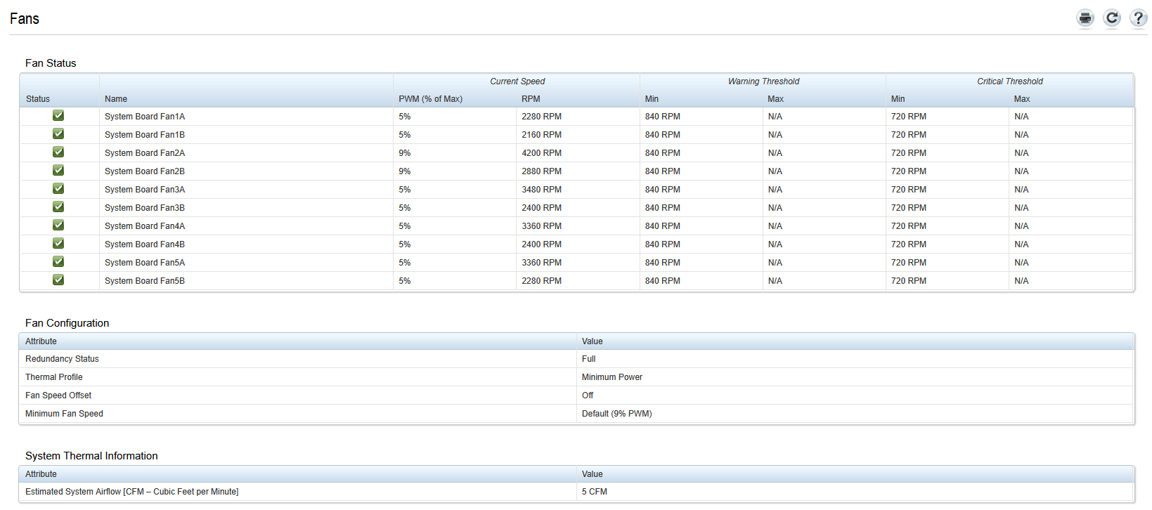 - Fans mostly 2,000–3,000 RPM, with one or two zones higher depending on chassis/drives