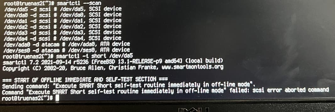 “Sending command: “Execute SMART Short self-test routine immediately in off-line mode”. Command “Execute SMART Short self-test routine immediately in off-line mode” failed: scsi error aborted command”