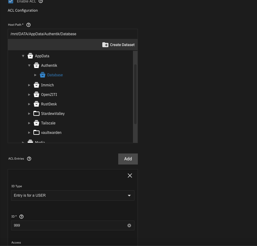 [2025/05/28 14:11:26] (ERROR) app_lifecycle.compose_action():56 - Failed ‘up’ action for ‘authentik’ app: Network ix-authentik_default Creating\n Network ix-authentik_default Created\n Container ix-authentik-permissions-1 Creating\n Container ix-authentik-redis-1 Creating\n Container ix-authentik-redis-1 Created\n Container ix-authentik-permissions-1 Created\n Container ix-authentik-postgres_upgrade-1 Creating\n Container ix-authentik-postgres_upgrade-1 Created\n Container ix-authentik-postgres-1 Creating\n Container ix-authentik-postgres-1 Created\n Container ix-authentik-authentik-worker-1 Creating\n Container ix-authentik-authentik-server-1 Creating\n Container ix-authentik-authentik-worker-1 Created\n Container ix-authentik-authentik-server-1 Created\n Container ix-authentik-permissions-1 Starting\n Container ix-authentik-redis-1 Starting\n Container ix-authentik-redis-1 Started\n Container ix-authentik-permissions-1 Started\n Container ix-authentik-permissions-1 Waiting\n Container ix-authentik-permissions-1 Exited\n Container ix-authentik-postgres_upgrade-1 Starting\n Container ix-authentik-postgres_upgrade-1 Started\n Container ix-authentik-permissions-1 Waiting\n Container ix-authentik-postgres_upgrade-1 Waiting\n Container ix-authentik-permissions-1 Exited\n Container ix-authentik-postgres_upgrade-1 Exited\n Container ix-authentik-postgres-1 Starting\n Container ix-authentik-postgres-1 Started\n Container ix-authentik-postgres-1 Waiting\n Container ix-authentik-redis-1 Waiting\n Container ix-authentik-permissions-1 Waiting\n Container ix-authentik-permissions-1 Waiting\n Container ix-authentik-postgres-1 Waiting\n Container ix-authentik-redis-1 Waiting\n Container ix-authentik-permissions-1 Exited\n Container ix-authentik-permissions-1 Exited\n Container ix-authentik-redis-1 Healthy\n Container ix-authentik-redis-1 Healthy\n Container ix-authentik-postgres-1 Error\n Container ix-authentik-postgres-1 Error\ndependency failed to start: container ix-authentik-postgres-1 is unhealthy\n