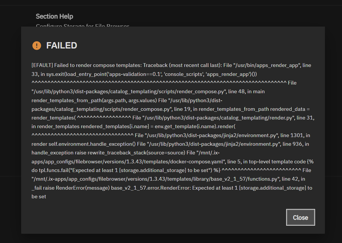 But when I try to install the Filebrowser app, I get an error. Any idea why?