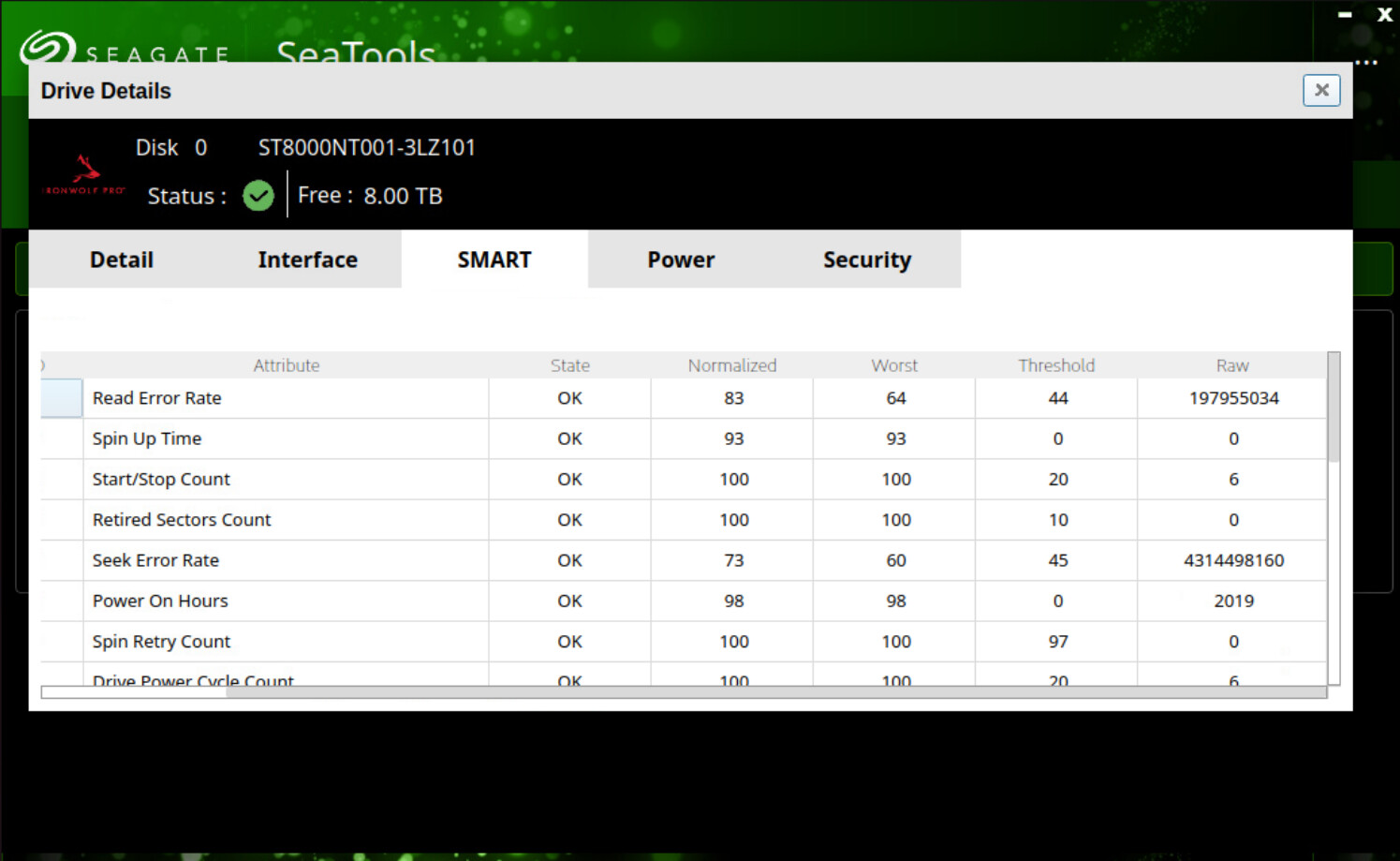 Since it’s an Ironwolf Pro drive, I used the Seatools from Seagate and apparently Seatools.