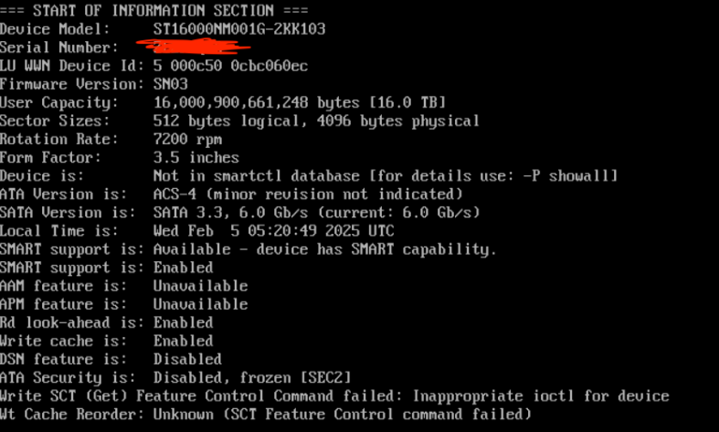 Seagate EXOS 16TB (Factory firmware SN03 and factory defaults sector size 512e):