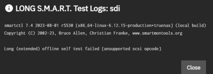 The issue is that trying to do a SMART test I get this message: