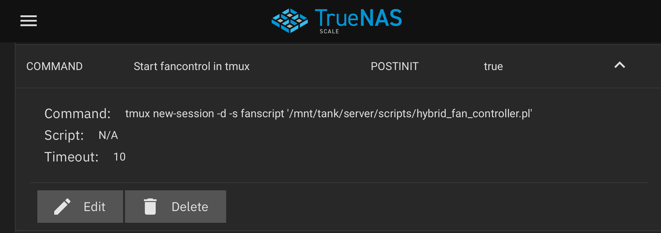 Anyway, in the TrueNAS case, launch the script inside a tmux process which is launched using a post-init command task from TrueNAS