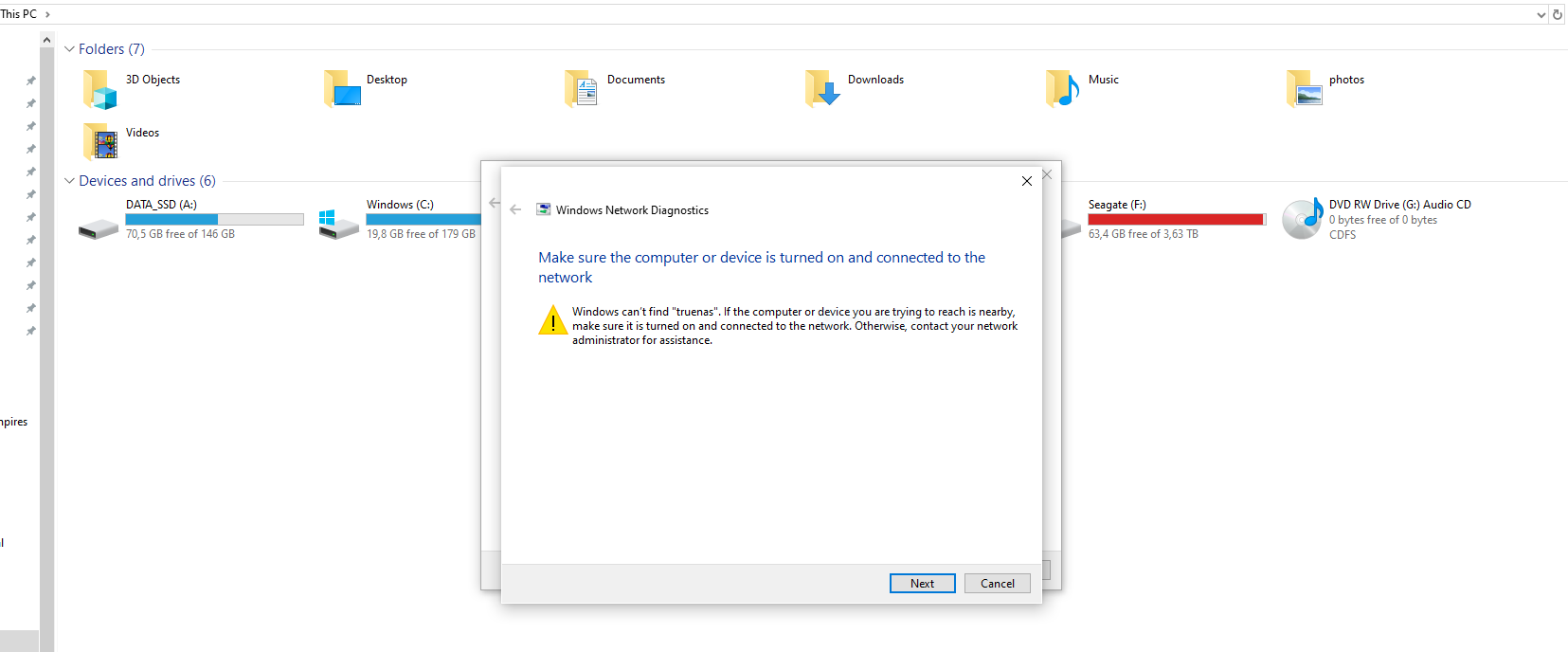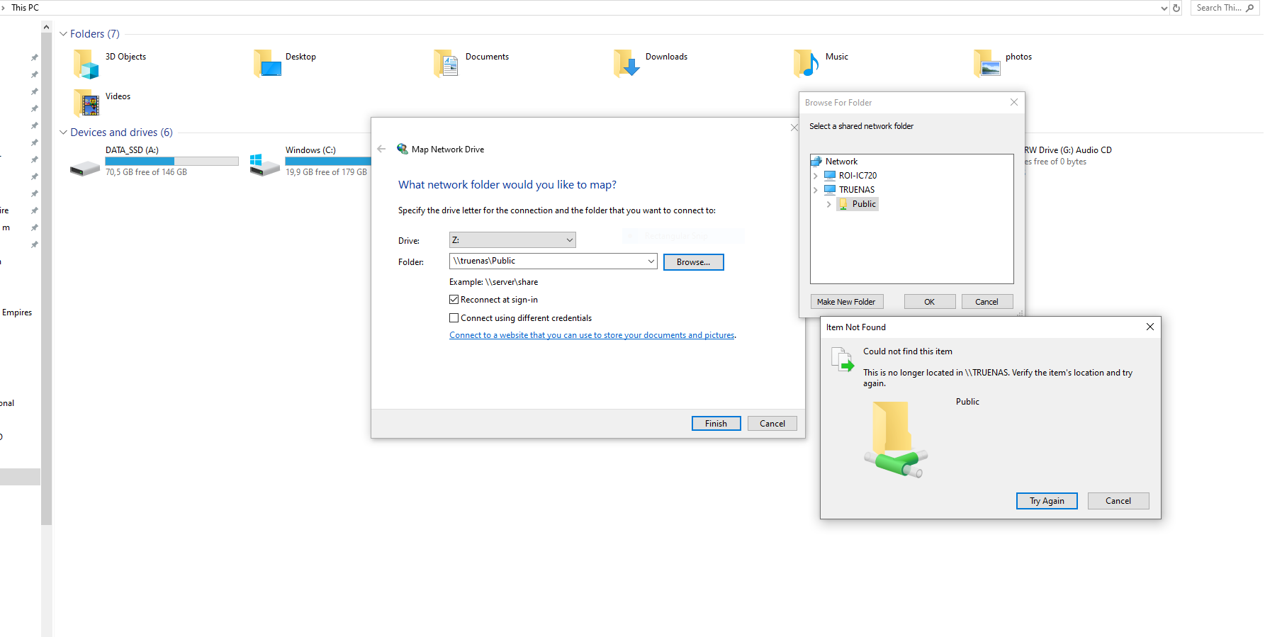 Yes, I’ve done that. But even with my truenas user creds I get that annoying message «windows can’t find truenas»