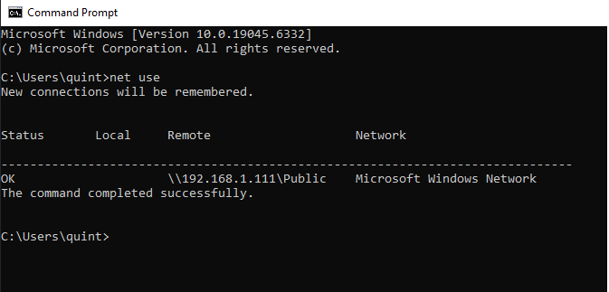 try net use \\192.168.1.111\Public /delete, and try adding it again.