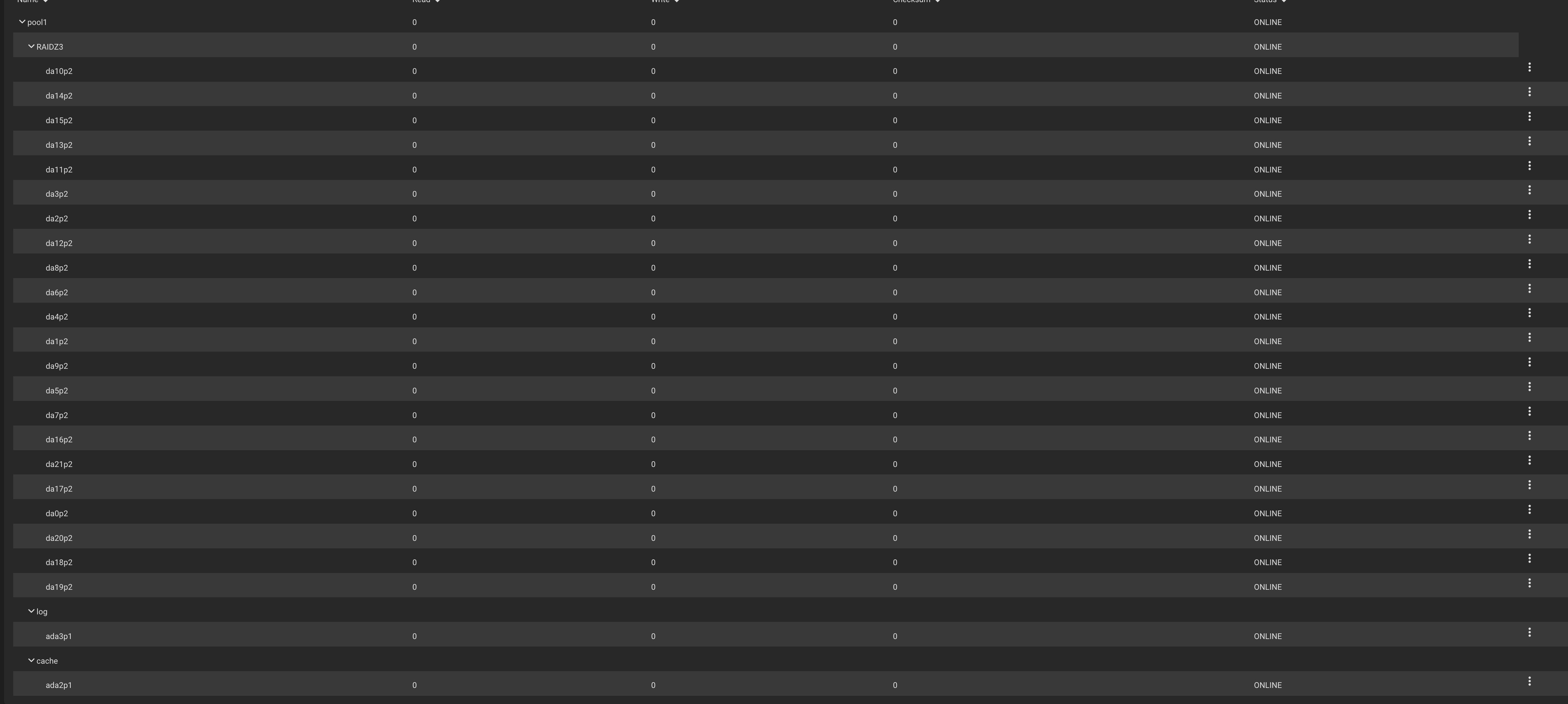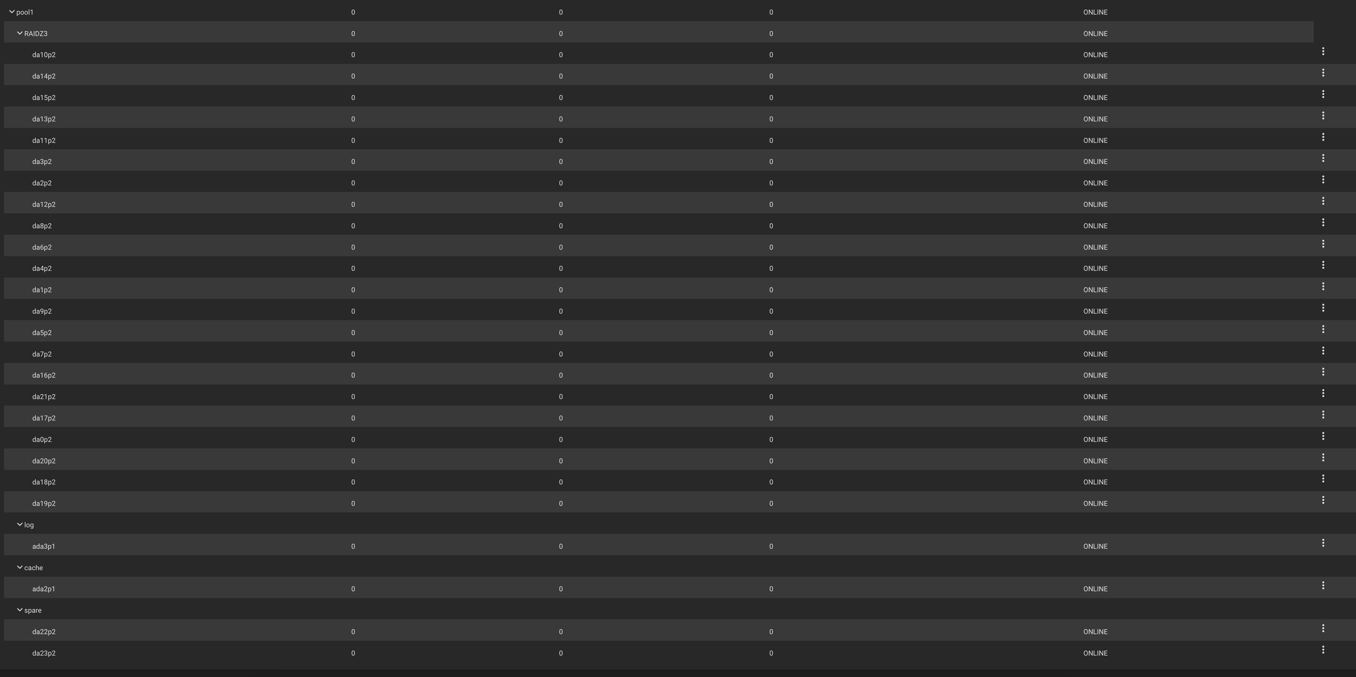 I also like to point out something odd maybe? that it says I have 22 drives but I should have 24 (including 2 spares) in the pool.