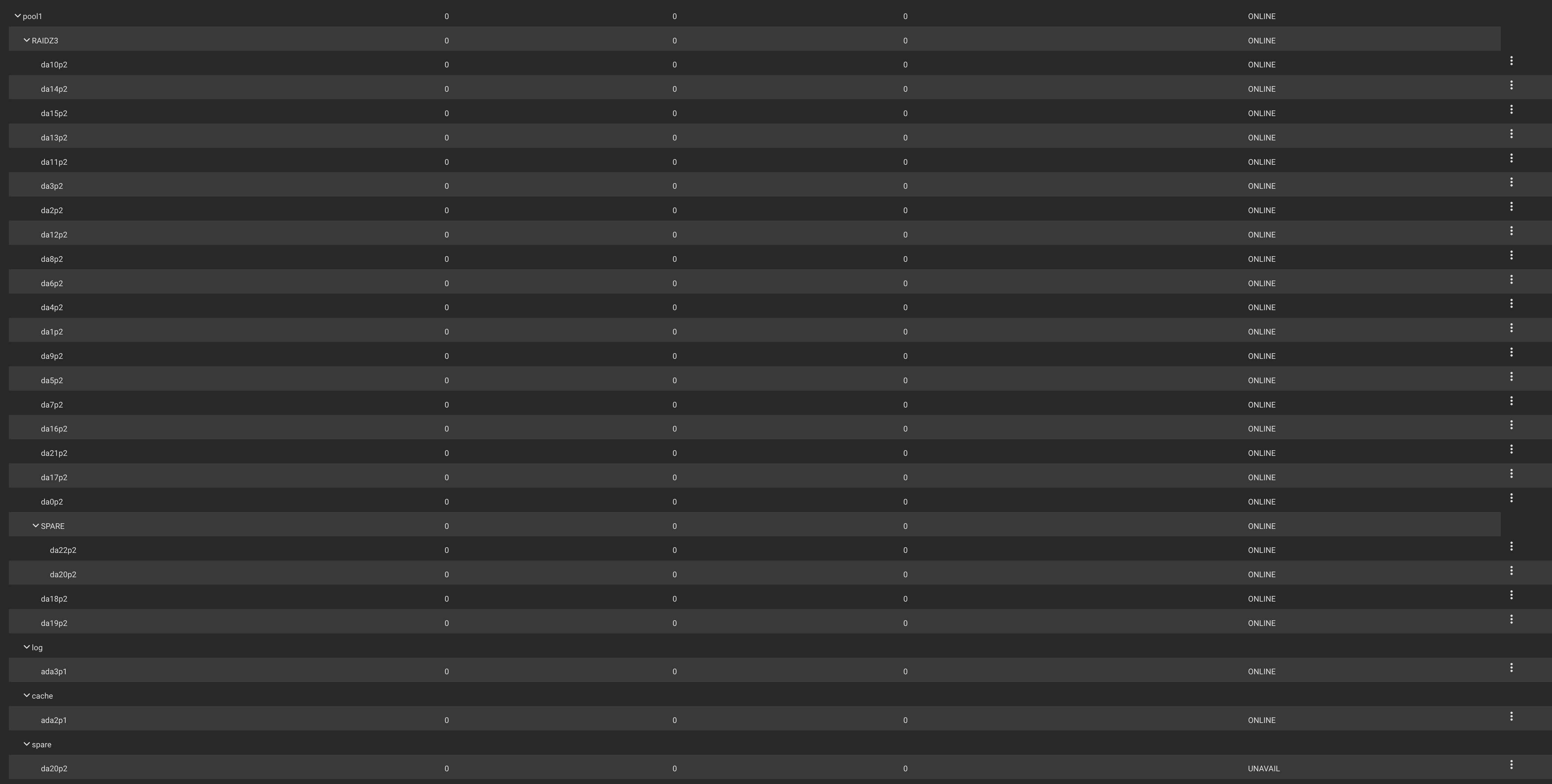 I now have 22 drives in the pool, but no mention of SPARES any longer.