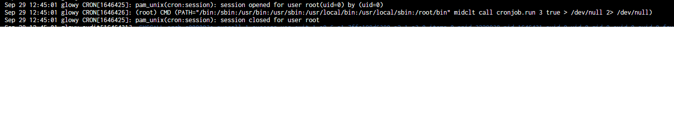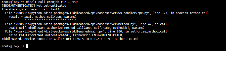 So it looks like that midctl fails to issue the actual cronjob when it is ran via cron itself. Manual running (and of course adding -U and -P credentials) works.