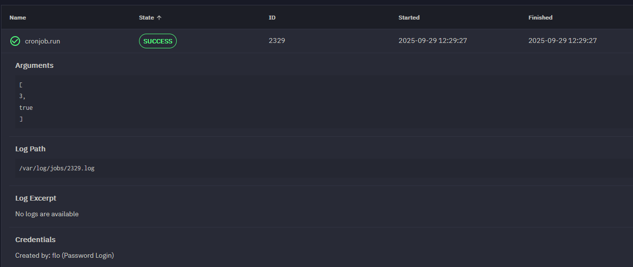 When I just setup the time (say for debugging every nth minute after the hour) journalctl says it ran midctrl but there is no new entry in the jobs page.