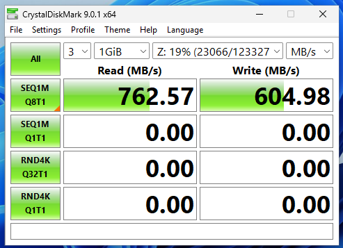 This is from a completely fresh Windows 11 25H2 VM. Looks like there is still a pretty significant uplift in sequential performance from the base configuration.