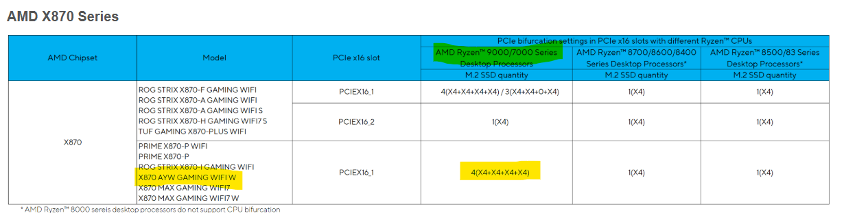 Has anyone run four NVMe drives on the ASUS X870 AYW GAMING WIFI with an Asus Hyper M.2 x16 Gen 4 Card?