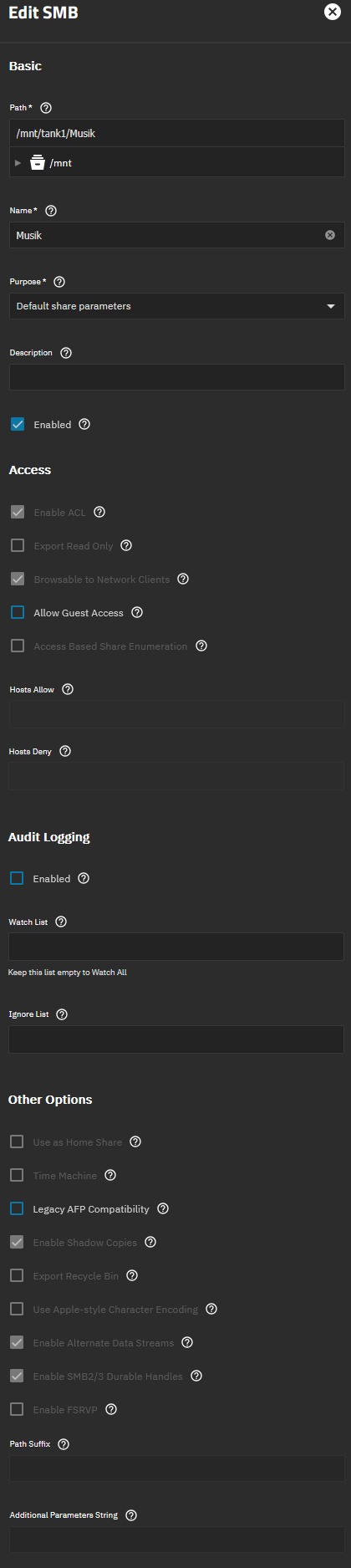 music SMB share settings: