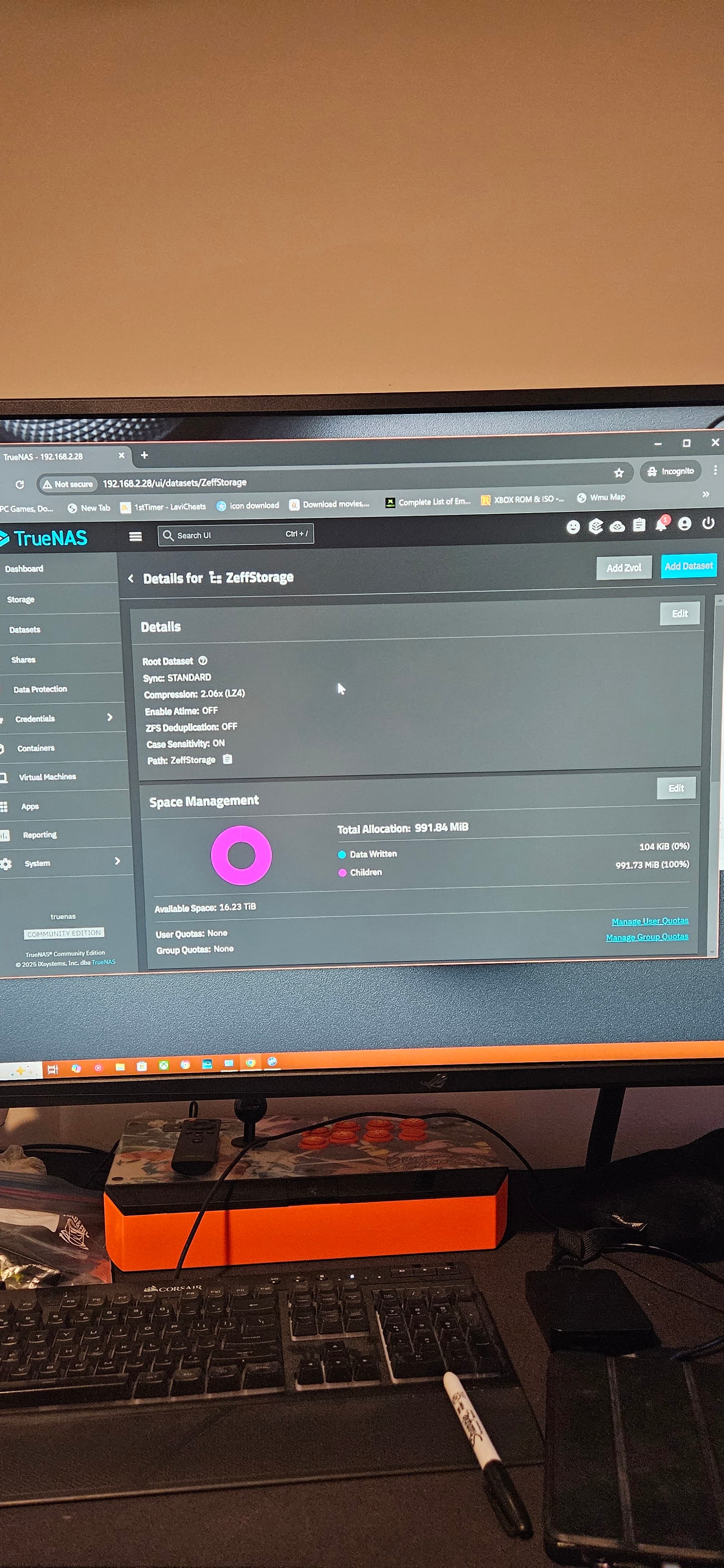 Try clicking on the Datasets tab and see if you see ZeffStorage with the child dataset of ZeffDataSet. Your pool shouldn’t have been showing as empty and I was afraid you had created a new pool or something.