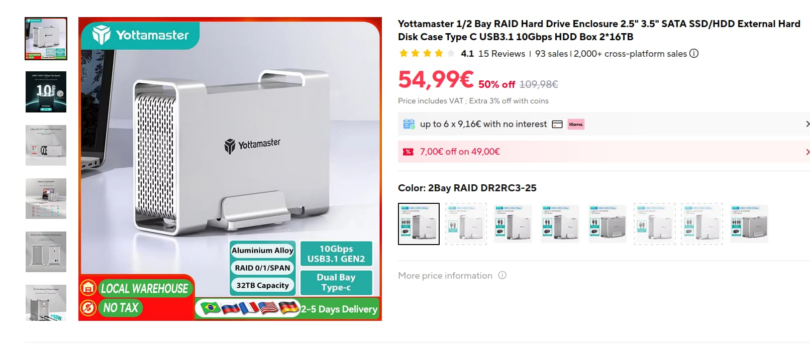 All this you can buy for less than 200USD for the DAS, about 300 USD each for the 2 HDDs.