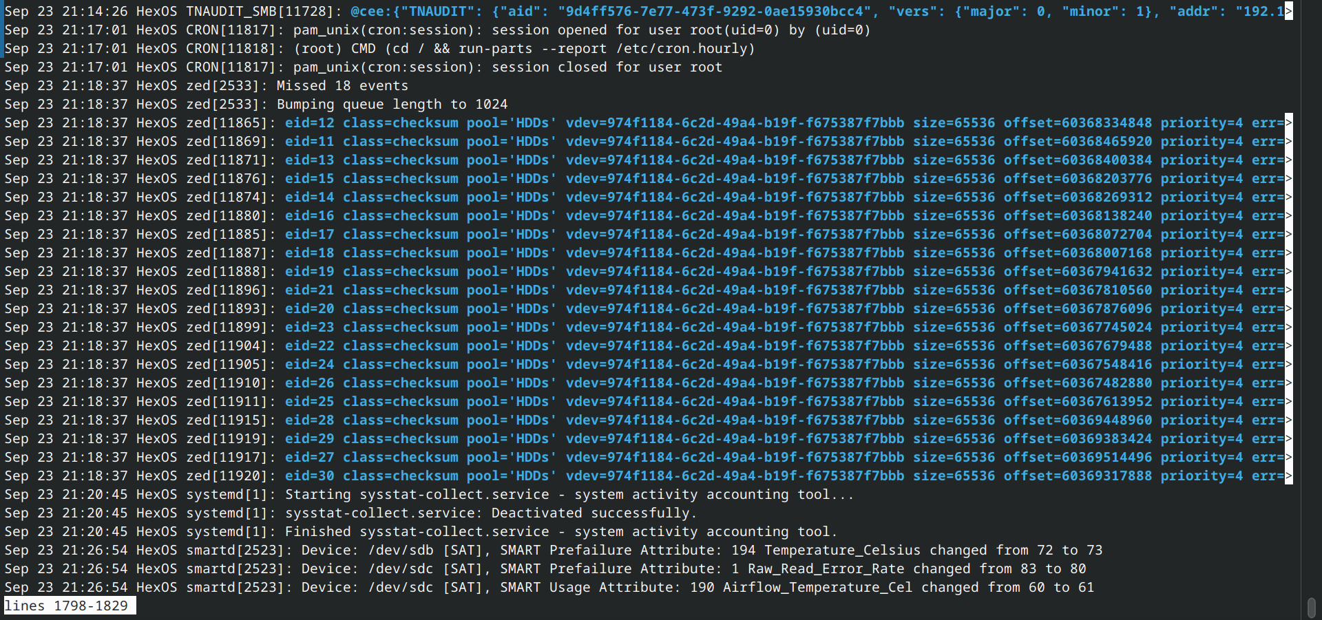 Is there some kind of place to check error log? I have the exact timing because HexOS sent the mail.