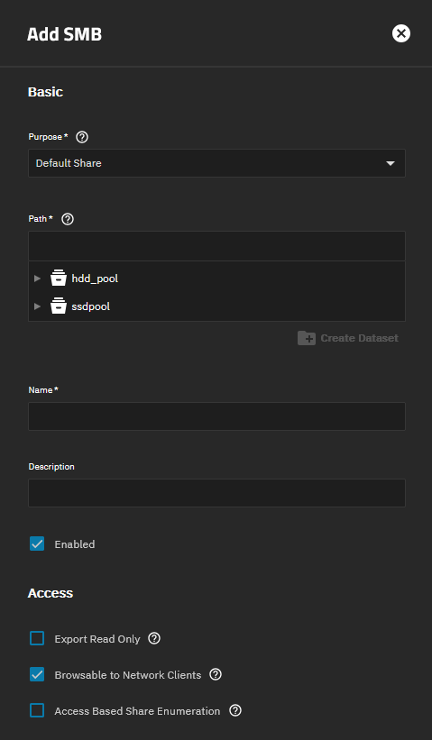 Access Based Share Enumerationhides entire shares based on the share ACL (which is unrelated to file system ACL). It’s not evaluated on a per file or per folder basis.Hide unreadable,Hide unwritableare Samba features which hide individual files depending on their access rights. These features are off by default.ixnas:truenas_abethis is a new 25.10 feature which is truenas exclusive, but is similar toHide unreadable. It’s enabled by default.