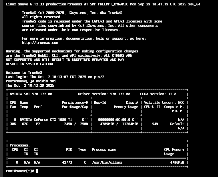 TrueNAS 25.10 now uses the NVIDIA open GPU kernel modules with the 570.172.08 driver. This enables TrueNAS to make use of NVIDIA Blackwell GPUs - the RTX 50-series and RTX PRO Blackwell cards - which many users have requested support for.