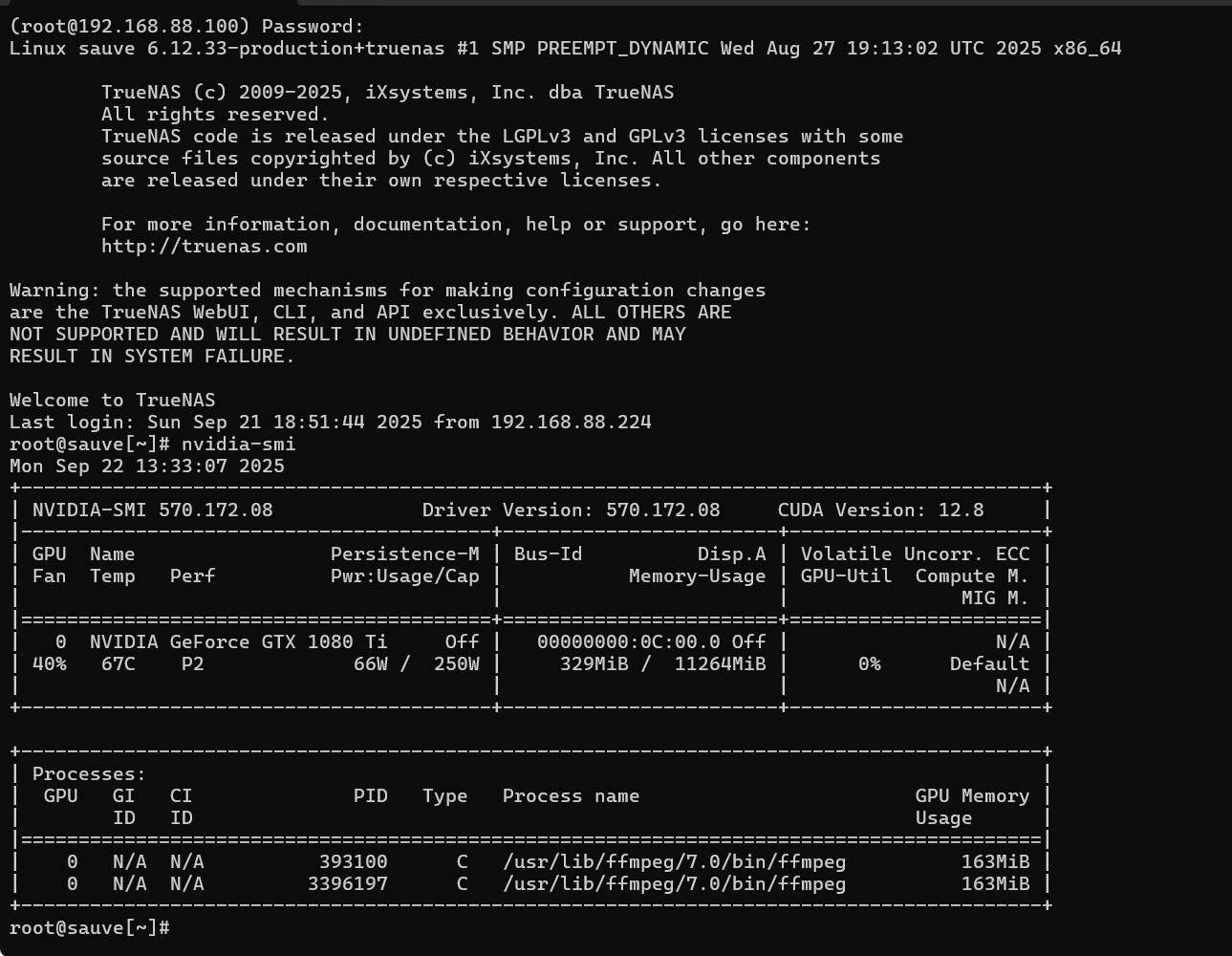 I modified the official repository’s scale-build to switch back to the proprietary driver in order to support these soon-to-be-deprecated cards, and uploaded the compiled driver to truenas-nvidia-drivers.