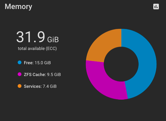 64 G for my main home NAS on CORE, running jails and VMs.