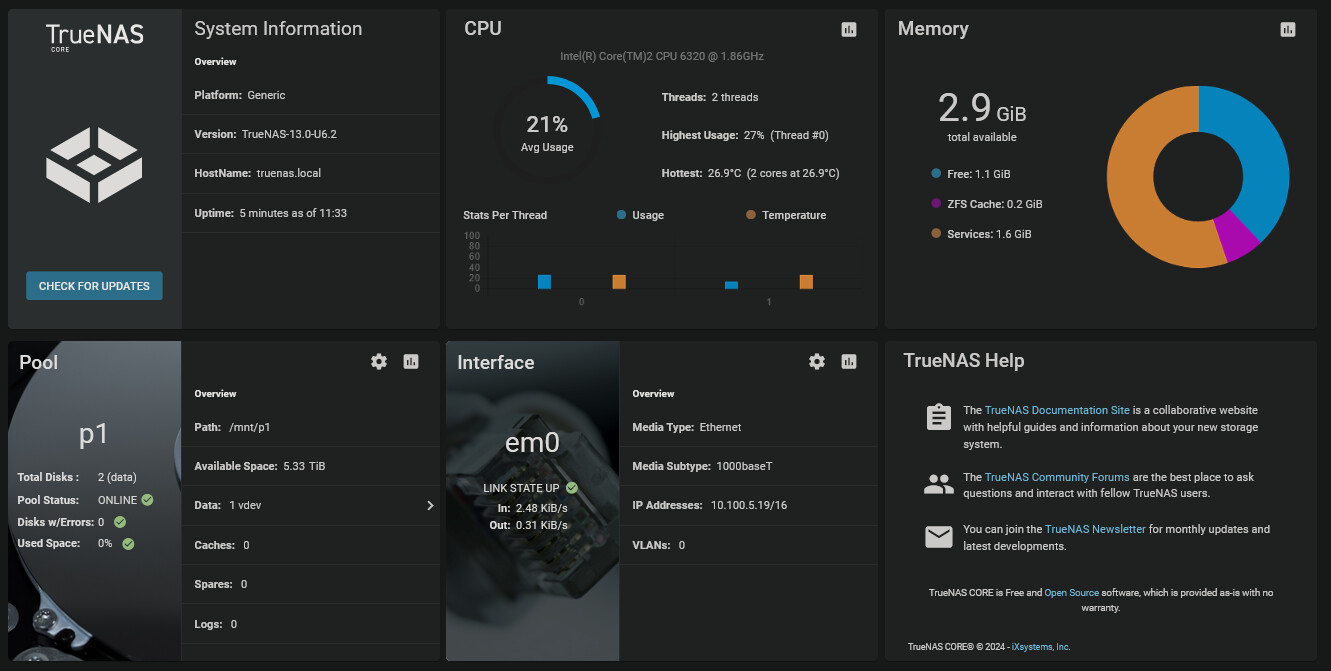 64 G on the CORE system at our Karlsruhe office running time machine backups and VMs