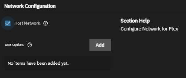 If however I select the “Host Network” option (which is recommended on the Plex forums to check despite the app config saying not to), the options to define the IP I’d like to use for the app go away.