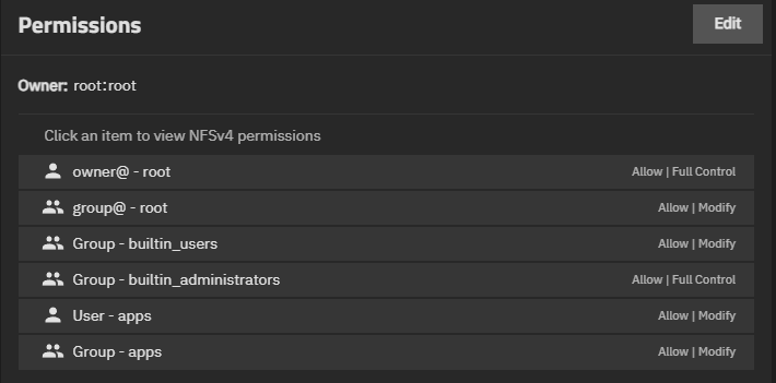 edit: I have just tried deleting and reinstating the apps group permissions on the Plex Media dataset. Now Plex can see all the files inside my ‘Photos’ folder, but all other media in every other folder is still inaccessable. I also still can’t access these photos in the SMB share.