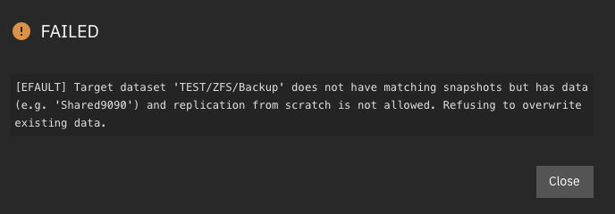Even more interesting is that even if I select ‘Replication from scratch’ it still preserves my child dataset on the receive system assuming you are sending recursively a layer above and not specifically going from one dataset to another.