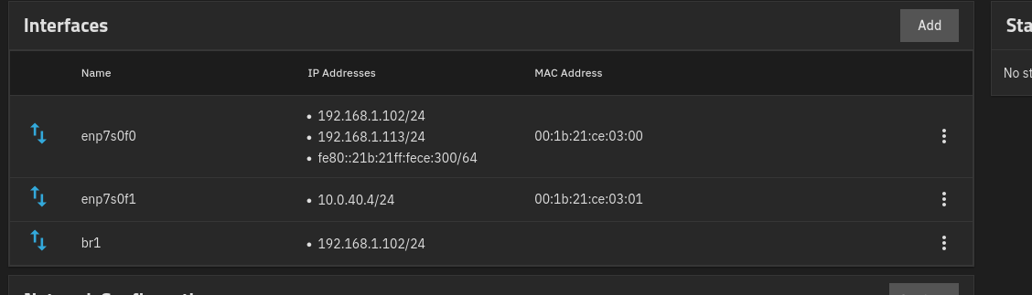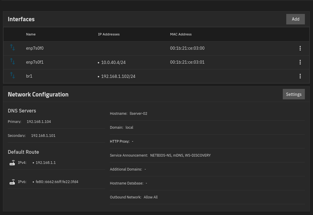 I feel I should just set a static IP for the truenas nic enp7s0f0 eg 192.168.1.100