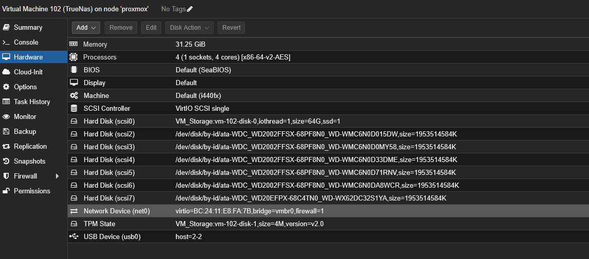 Still, Truenas as a VM in proxmox should not be used for important data. Maybe as a backup.