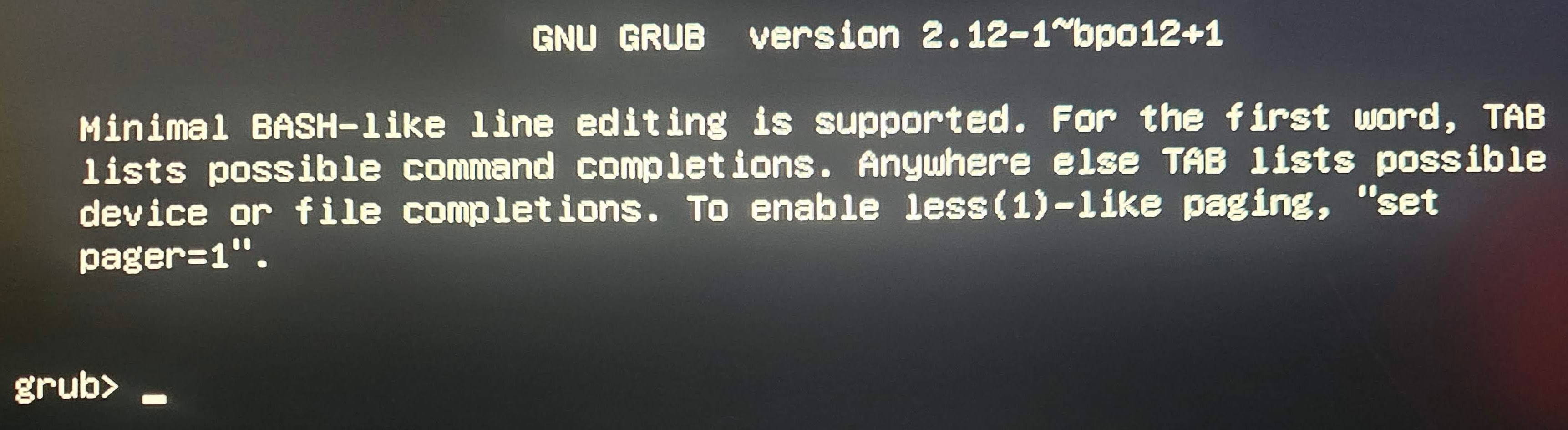 Again, at the recommendation of Google Gemini AI, and THIS time.. I got a frozen screen, for an hour. I then tried to log into the server GUI again, and couldn’t. At all. So.. I plugged in my portable monitor, mouse and keyboard to the server, and THIS is what I saw on the screen:
