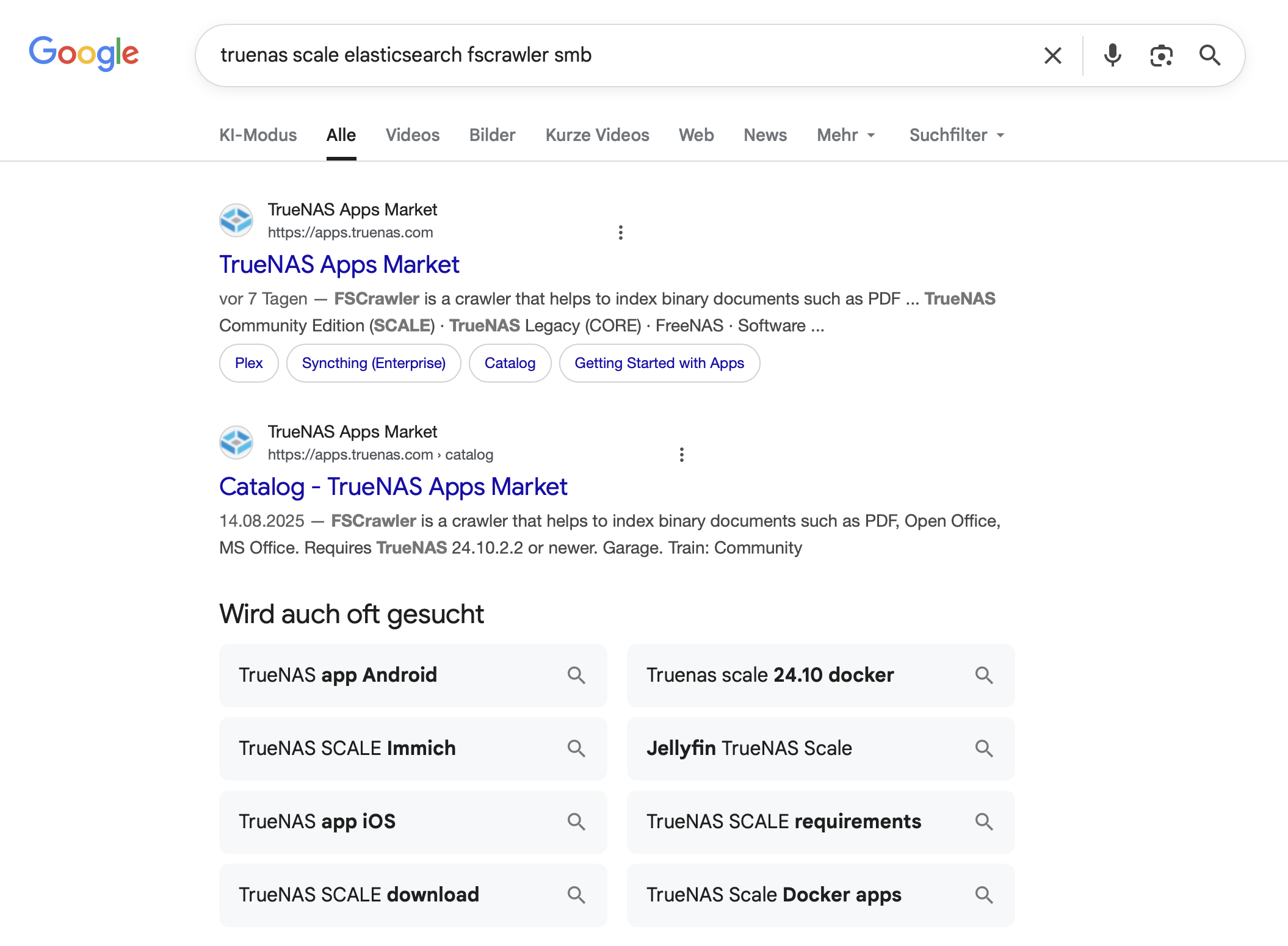 - an index for elasticsearch (fscrawler app available from TrueNAS market)