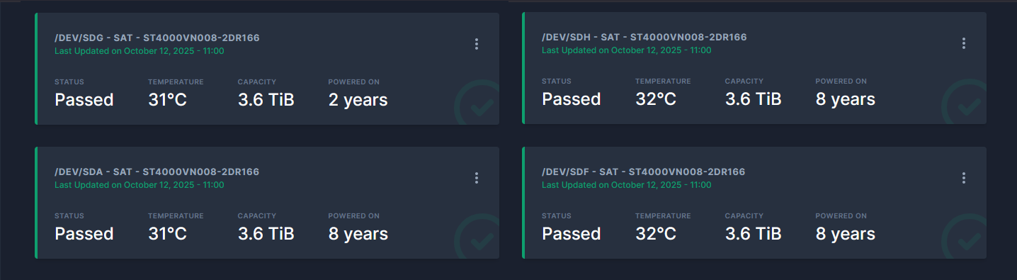 I will be migrating the whole setup onto newer larger drives in the near future, RAIDZ1 was ok for the 4TB drives but will reconfigure to RAIDZ2 due to going to 18TB drives. Its funny but just this one pool is near the same size as as the entire storage space as the 16 drives.