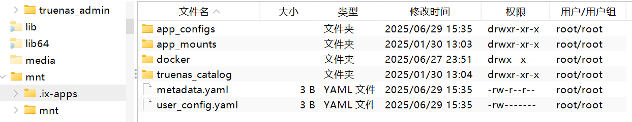 app_configs app_mounts docker metadata.yaml truenas_catalog user_config.yaml