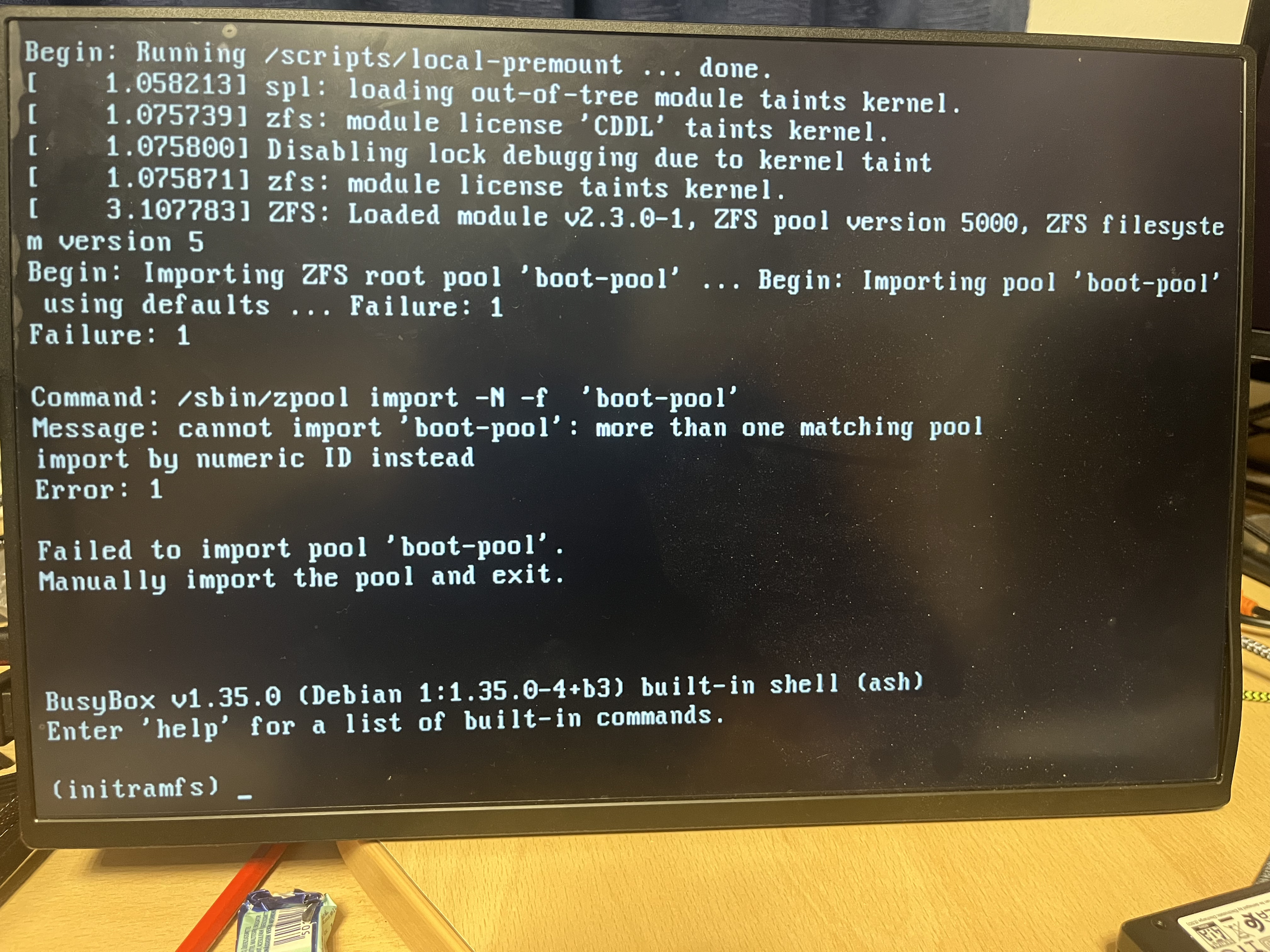 Da ist auf irgendeiner der SSDs irgendein altes Gerümpel, das auch mal ein ZFS-Pool war. Mit demselben Namen.