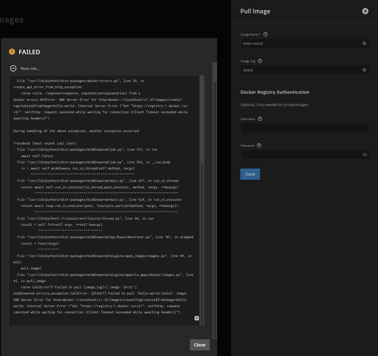 This issue makes TrueNAS Apps completely non-functional as no images can be pulled. The system is otherwise healthy with all storage, networking, and services working correctly.