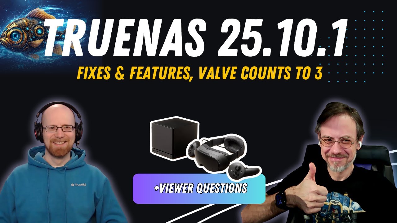 Kris and Chris are back, after a busy November, just in time to detail the key features coming up in the first point release for “Goldeye” - TrueNAS 25.10.1 - already at over 55,000 installs. They’ll also talk about the new Valve hardware announcements, and what this could mean for the adoption of Linux on the desktop, as well as better support for x86-on-ARM translation. And in honor of Valve acknowledging the existence of the number 3, they’ll take a trio of viewer questions. All this and more today on T3.