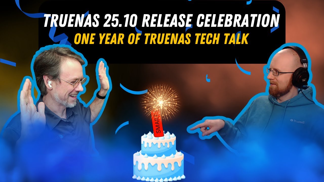 On this special Birthday episode of TrueNAS Tech Talk; Wait, Kris and Chris have been podcasting for a whole year already? Time has flown, and we’re talking about the TrueNAS 25.10 “Goldeye” launch, some tidbits from the OpenZFS Developer Summit, and yes - they will talk about the SMART changes! NVIDIA drivers, MinIO changes, and lots more viewer questions are all coming up next!