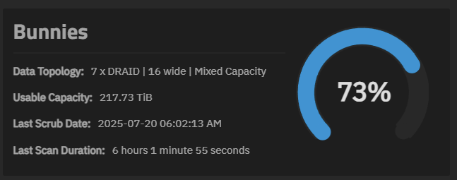 TrueNAS is reporting 73% used for one pool. Is that against the 128K record size then? Is it possible could TrueNAS calculate against the average dataset record size? Or is the percentage calculation already taking that into account?