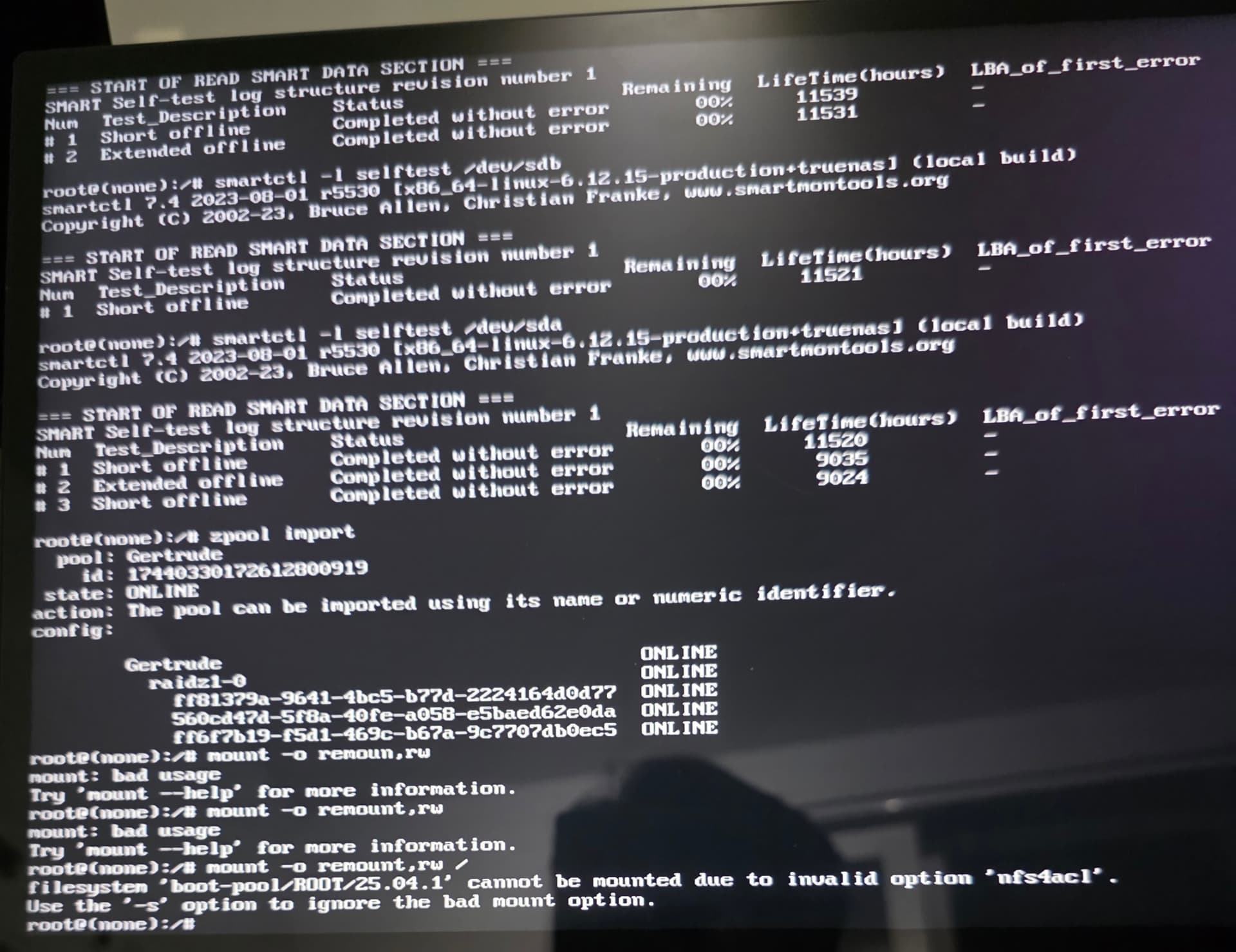 A couple of months ago my NAS went down, when I checked it, I noticed a kernel panic. After some troubleshooting (with some help from ChatGPT) I ran a memtest and found out one of my RAM sticks was bad. Replaced the faulty stick, re-ran memtest without errors and then reinstalled TrueNAS Scale and set everything up again. Was all fine until a couple days ago, when again I couldn’t reach my NAS. Important to note, at the time I was extracting 3x 50GB zip files on the NAS when it lost connection.