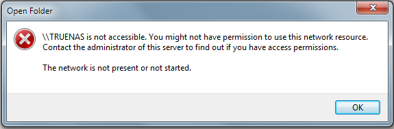 In File Explorer I am able to see TRUENAS under Network. When I click on it I encounter this error: