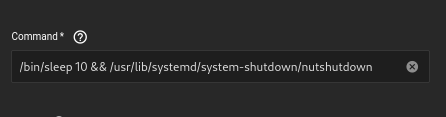 Command:[ -f /etc/killpower ] && { /bin/sleep 10; /lib/nut/usbhid-ups -a UPSNAME -k; }
