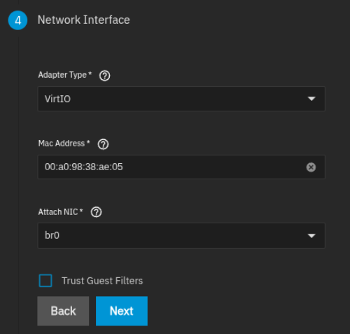 Then use the bridge device you created in your VM. Or if you are not using a bridge, you can also select Trust Guest Filters to get Home Assistant’s discovery to work.