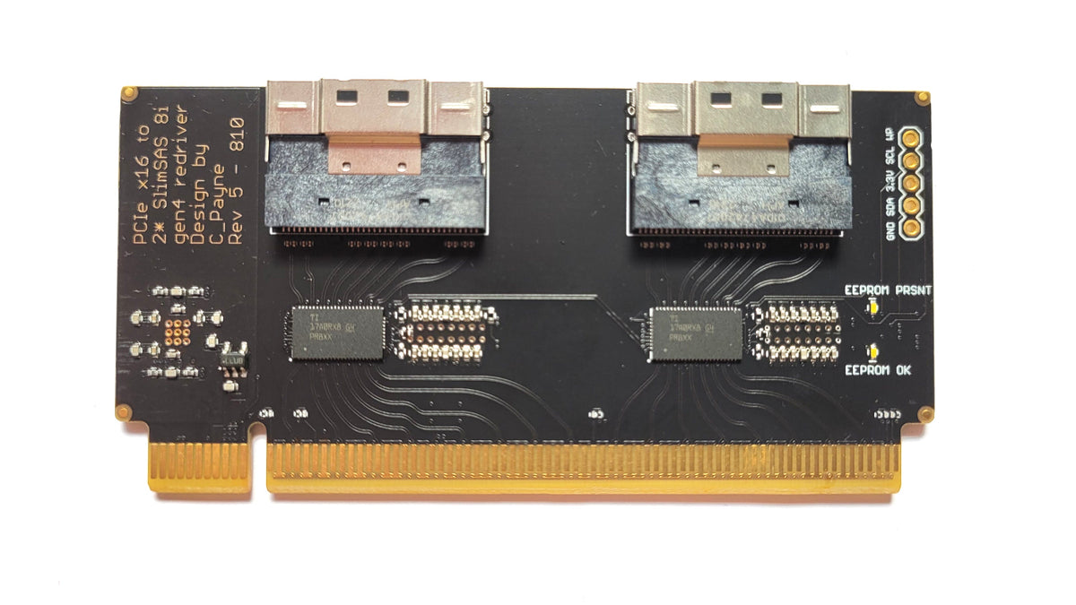 That, or rather the Shenzhen equivalent (Reichelt pricing is… ), or the cabled version. That should be enough for PCIe 3.0, the main issue being cooling these U.2 drives.
