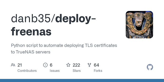 Now, for that domain, I use a wildcard lets encrypt certificate for all my services including TrueNAS. I run the ACME automation outside of TrueNAS on a VM because I need to load the updated certificate using scripts I’ve written to automate the process. These scripts are run by the ACME post update hooks. This way, I access all my services, internal and externally using FQDN’s. Since my ACME updates are outside of TrueNAS, I use a go program in my deployment scripts to update my two NAS machines. I’ve made this go program available at GitHub. The current release is 1.3 and I have pre-compiled binaries available for Linux, FreeBSD, Windows, and MacOS available in the Release 1.3 section of GitHub. See GitHub - jrushford/tnascert-deploy: TrueNAS certificate deployment tool