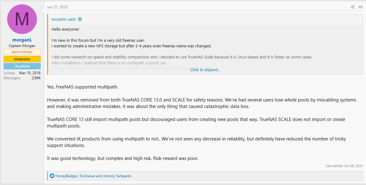In summary, the TrueNAS team has been open and honest about the dangers of using RAID gear with ZFS, and so has the community.